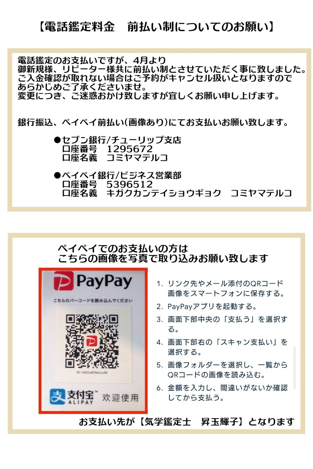 お支払いは全て、鑑定前の事前支払いのみとなります。